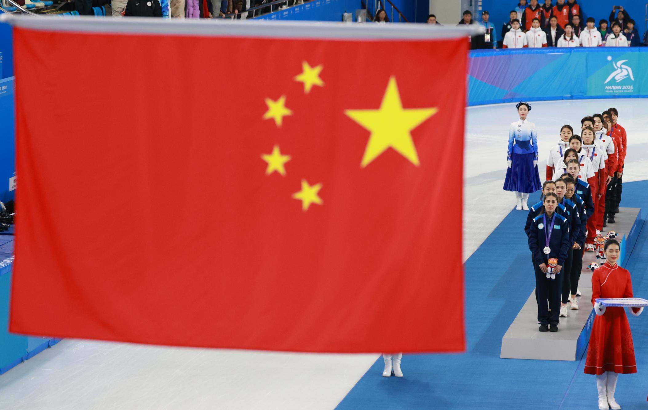 中国女子短道队夺得亚冬会接力项目金牌